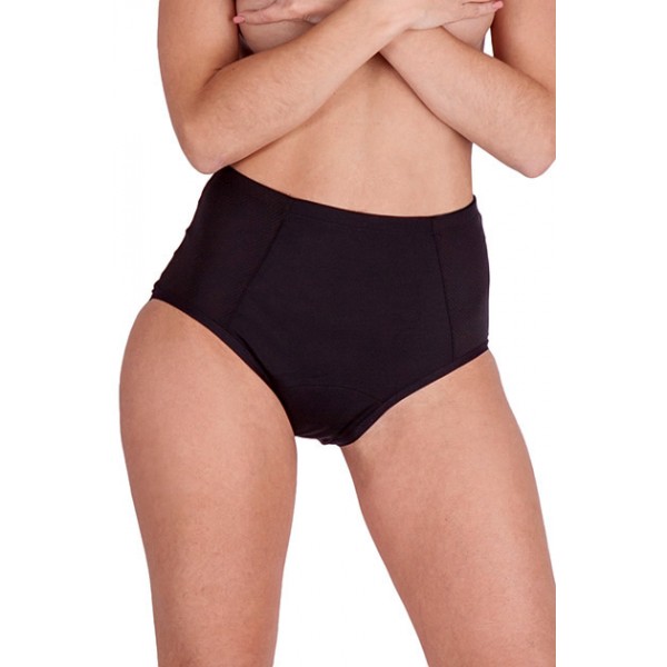 Este modelo de braguita tiene un diseño de talle alto, elástico, cómodo y con detalles lineales y suaves en los laterales que decoran la braguita. Incluye un refuerzo que se ciñe en toda la zona íntima. Pensado sobretodo para aquellos flujos regulares, menos abundantes, ideal también para su uso durante el día o en combinación de la copa menstrual.